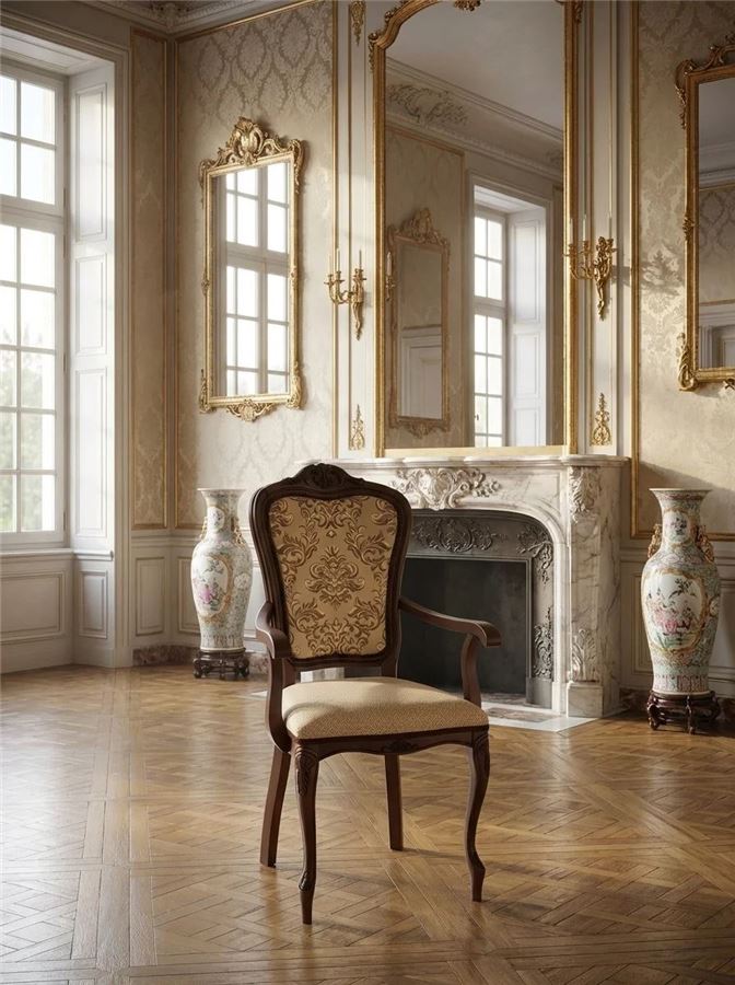 Кресло с подлкотниками Виконт (тон 317+ патина чёрная/ткань Агата серая/компаньон(Ц))